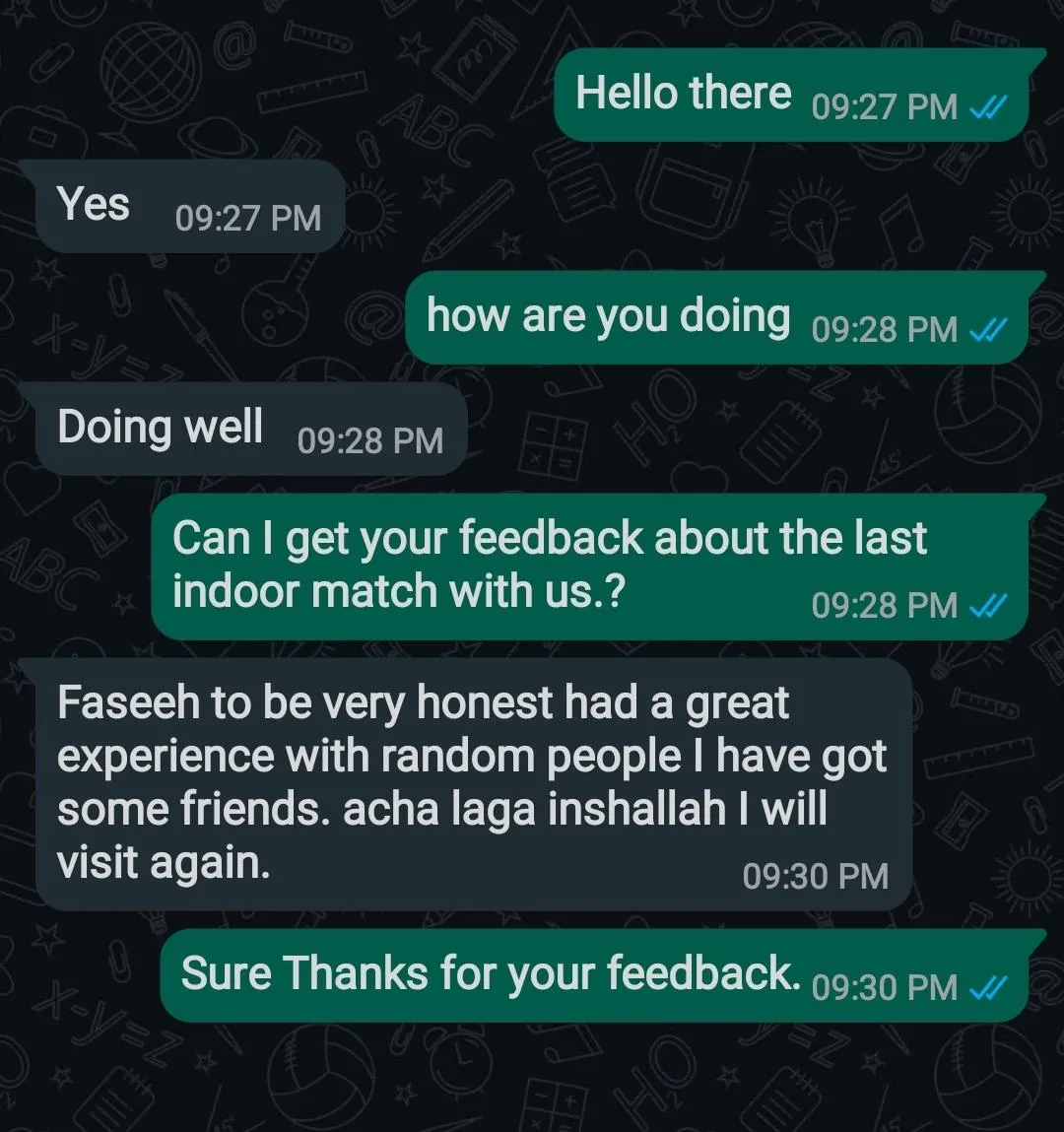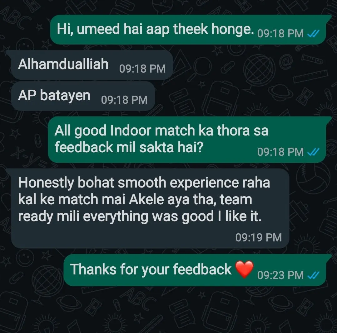We don't own a specific ground; we book different premium venues across Lahore based on availability and comfort.