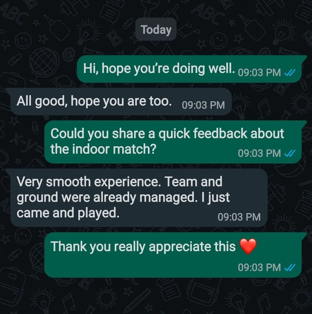 All our matches are organized at Indoor venues to ensure a premium environment.